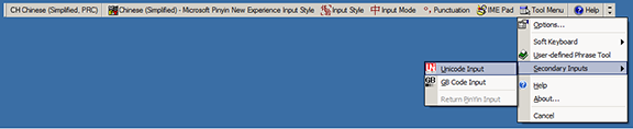 Select Unicode/GBK input on Windows XP: