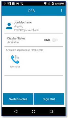 screen in the Zebra Profile Client for this user to the list of roles configured for this user in the Zebra Profile Manager application. See Edit Device User Roles.