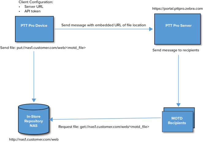 The diagram illustrates the MOTD data flow in an the architecture that supports NAS utilizing the PUT Method.